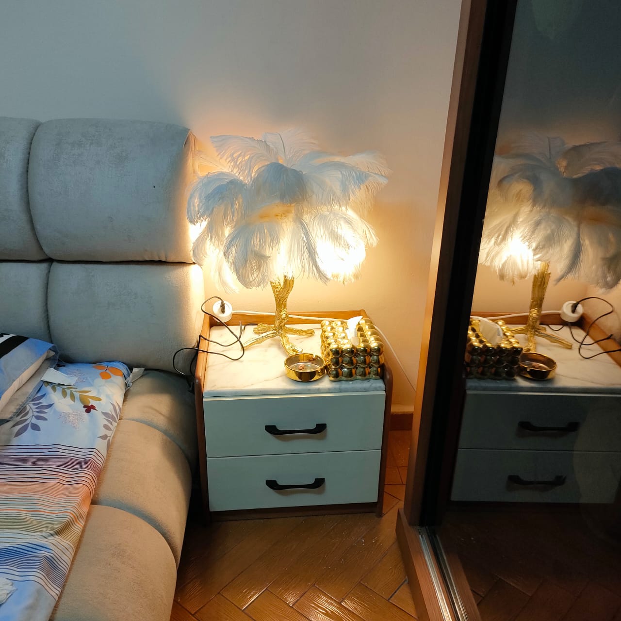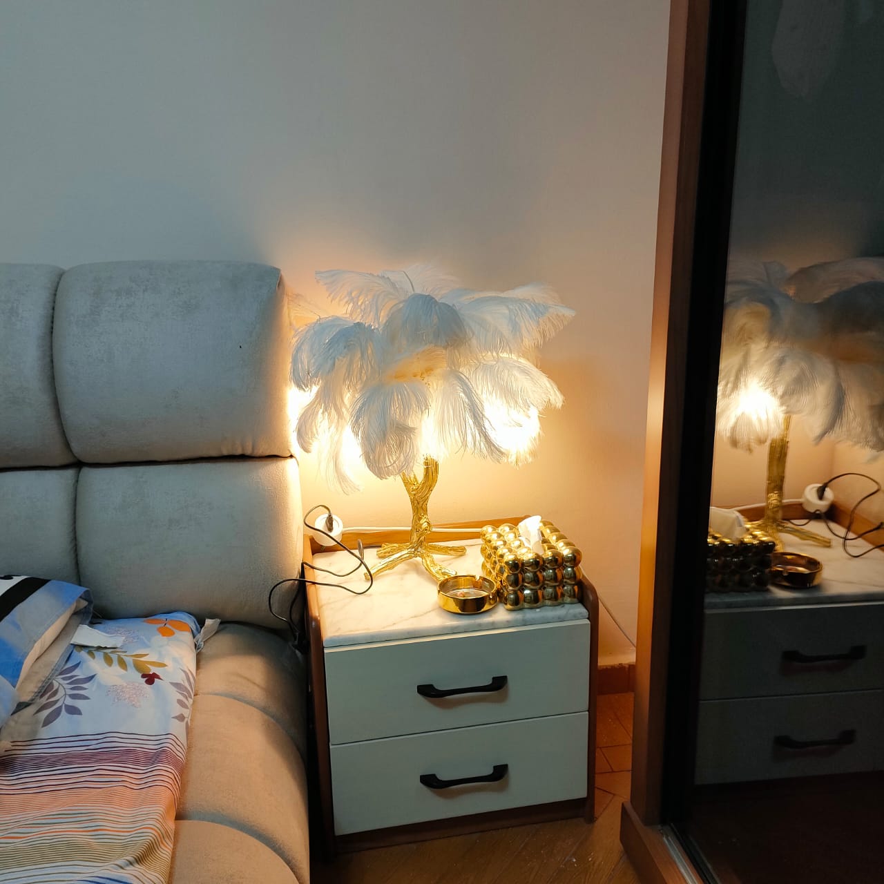- الخامات: ستيل - دهان إليكتروستاتيك مقاوم للصدأ والخدوش والرطوبة - ريش نعام طبيعي كثيف معالج