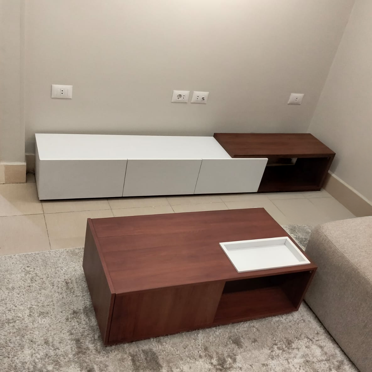 - مقاس ترابيزة التليفزيون: العرض 220سم - العمق 35سم-الارتفاع 40سم