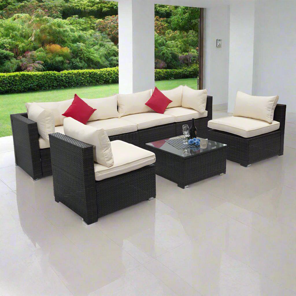 اختر طقم مكون من كنبة وكرسيين وترابيزة اذا كنت تبحث عن الإسترخاء وخلق جو خاص بيك في المنزل، فإليك هذا الطقم الرائع، ضعه في حديقة منزلك فهو مقاومة للعوامل الجوية والشمس