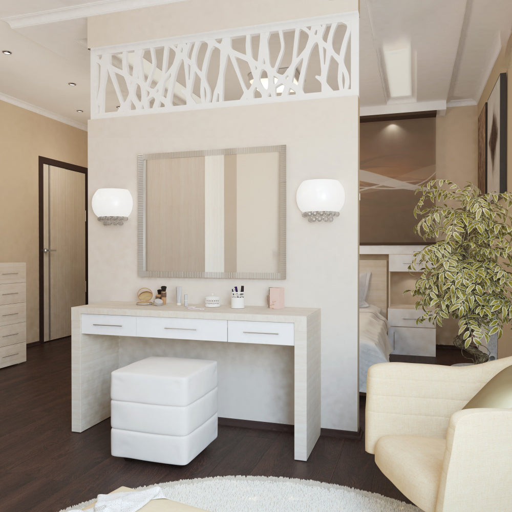 تسريحة عملية ومميزة بها ما يكفي من المساحة للمكياج والأكسسوارت بشكل ناعم يخلق ظل رومانسي لتصبح هي نقطة التركيز في الغرفة.
