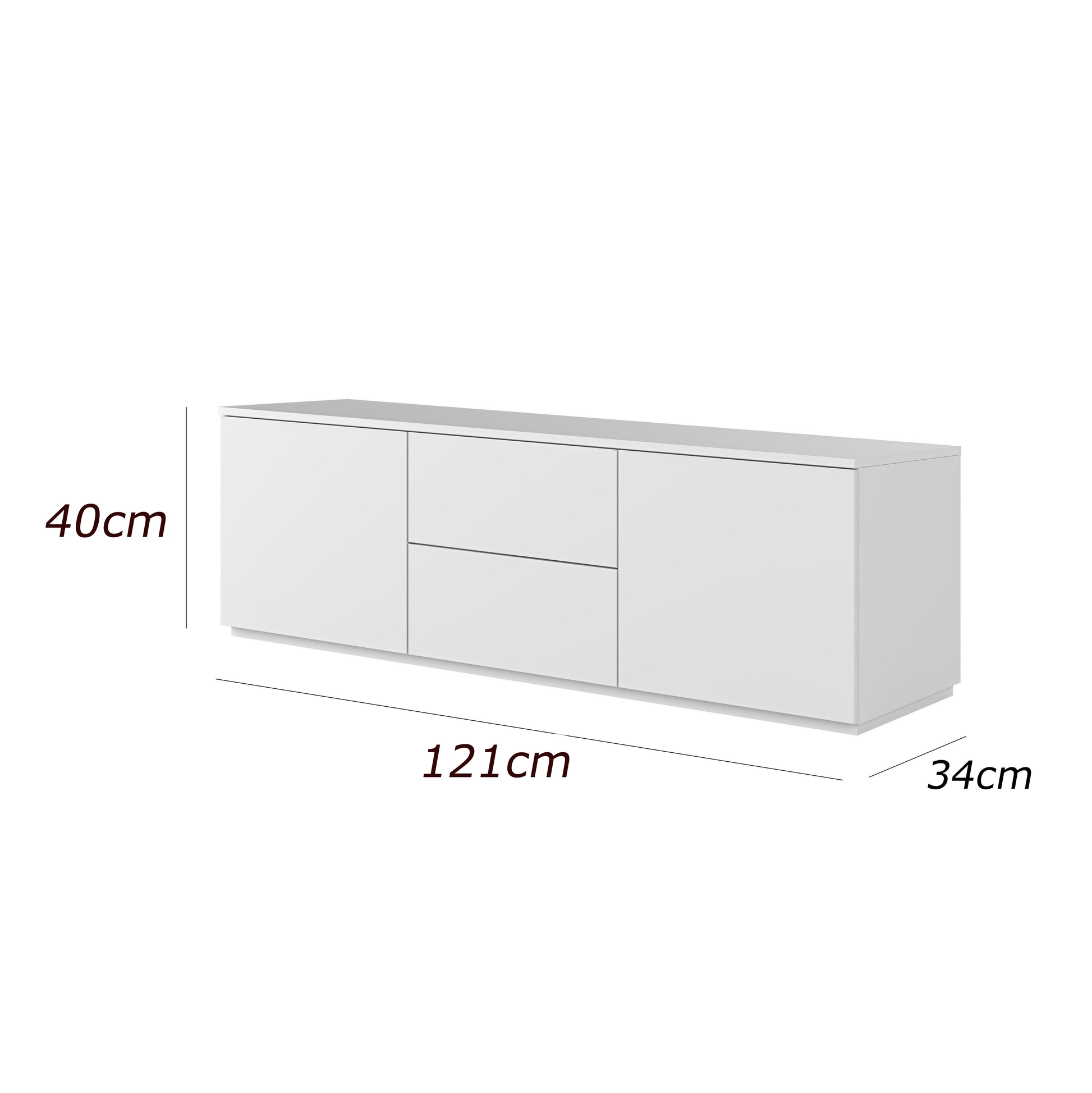 - المقاسات: العرض 121سم - العمق 34سم - الارتفاع 40سم