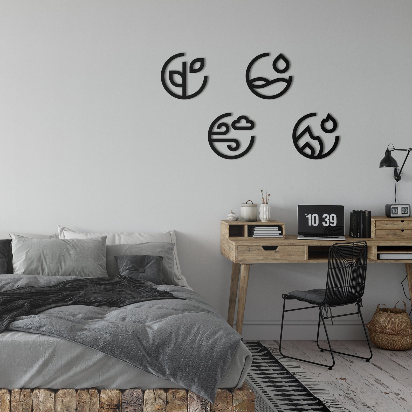 ديكور حائط بتصميم راقٍ يضيف لمسة تميز لأي مكان في بيتك. يخلق جو هادئ ويعطي الجدران شكل مختلف يجذب الأنظار. قطعة بسيطة ترفع من جمال المكان وتعكس ذوقك بأناقة.